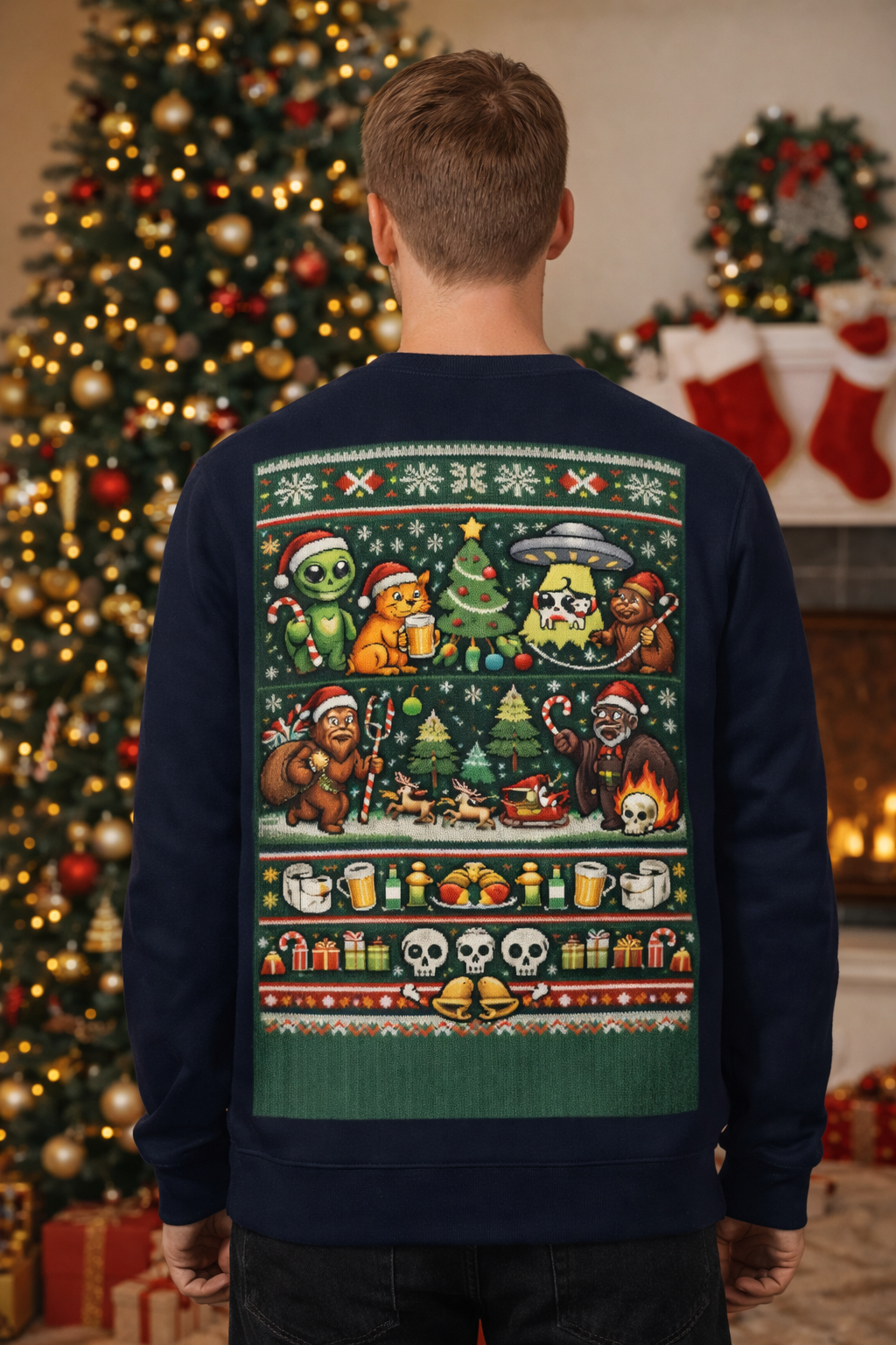 - Festive holiday graphic that adds personality without sacrificing comfort